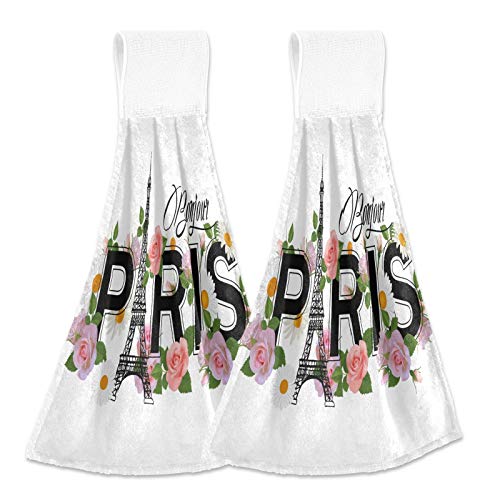 Essuie-mains Paris Tour Eiffel blanc rose fleur