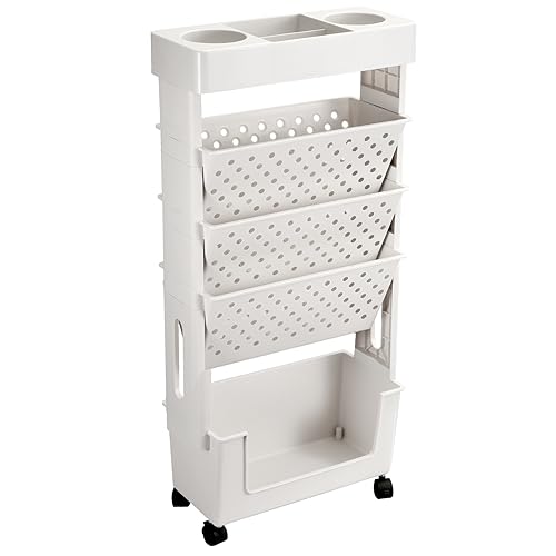 GaRcan Étagère à Livres à roulettes, étagère à 5 Niveaux, Ch...
