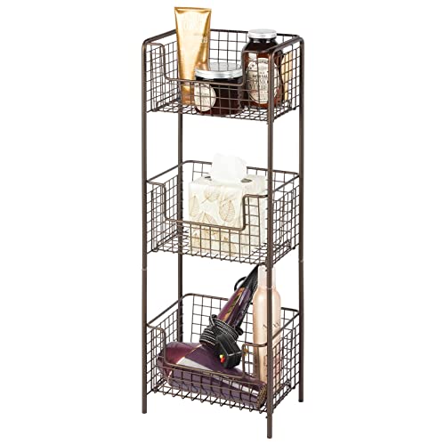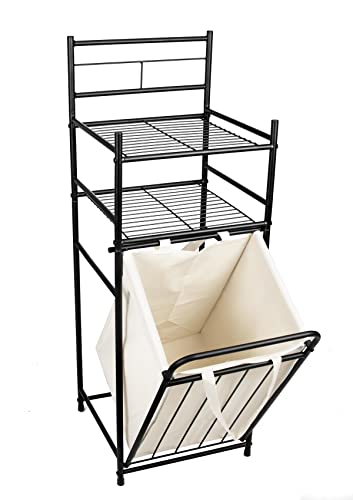Étagère de salle de bain avec panier à linge et deux étagère...