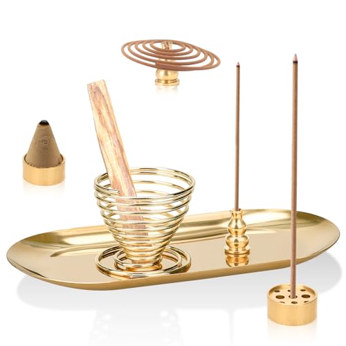 Nafosa Porte-encens ovale en laiton 5 en 1