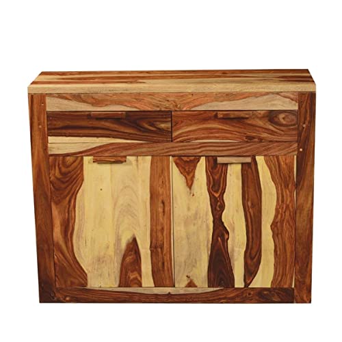 Industrieux Boston Buffet Indien Bois Massif 2 Tiroirs