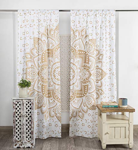 Rideaux Mandala Bohème Indien Hippie Ombré Blanc Doré