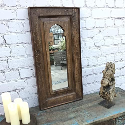 Mehrab Grand miroir en bois sculpté indien 80cm