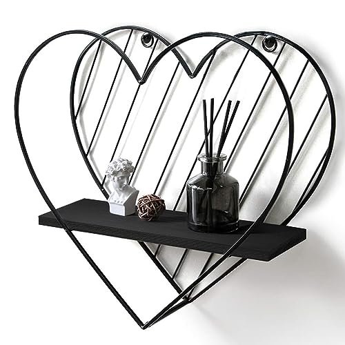 Afuly Etagere Murale Noire en Métal Étagères Flottantes Coeu...