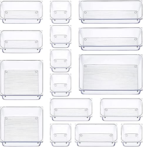 ZEYXINH 16 pièces Organisateur Tiroir Bureau, Transparent Or...