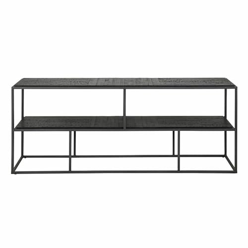 TV Teca Noir Étagère de Rangement Acier et Teck Enfilade Des...