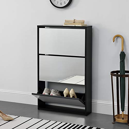Étagère Chaussures Design 3 Compartiments Stockage Miroir Pa...