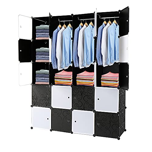 Armoire rangement 12 cubes modulables noir, rangement vêteme...