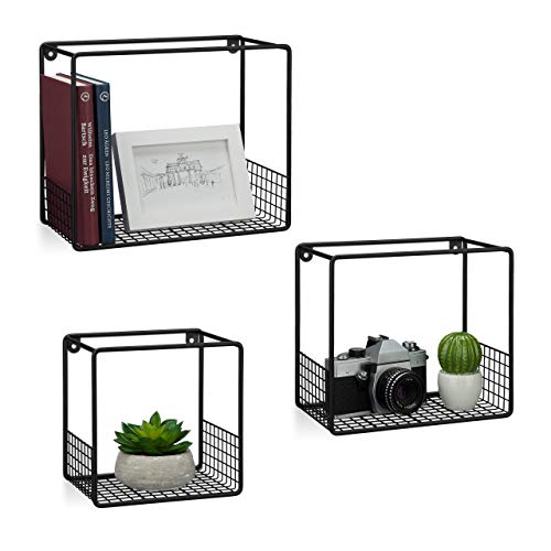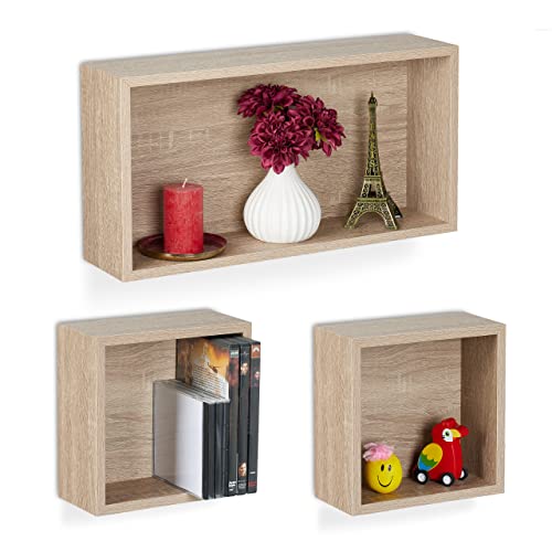 Relaxdays étagère murale carrée 3 tailles, rangement mural c...