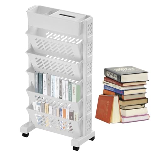 Bibliothèque mobile multifonctionnelle à roulettes 5 niveaux...