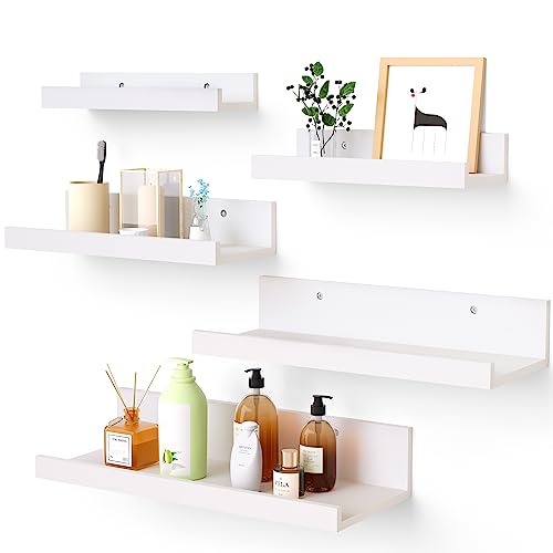 Lot mural simple de 5 étagères blanches pour chambre, salon,...