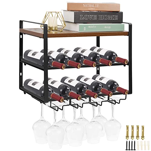 Mérasyan Étagère Bouteille Murale Casier Verre Bois Métal Ra...