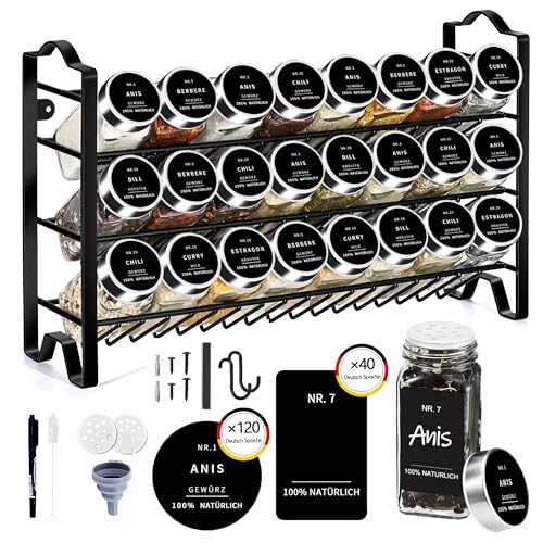 FDGAUCA Rangement Épices, 3 Étagères en Métal, 24 120ml, Boî...