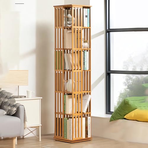 Bibliothèque Rotative 6 Niveaux en MDF, 360 Degrés étagère d...