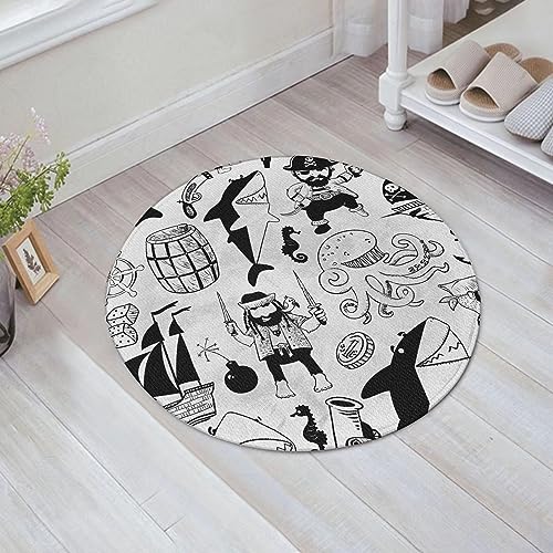 Rond imprimé noir et blanc personnages boucaniers grand cerc...