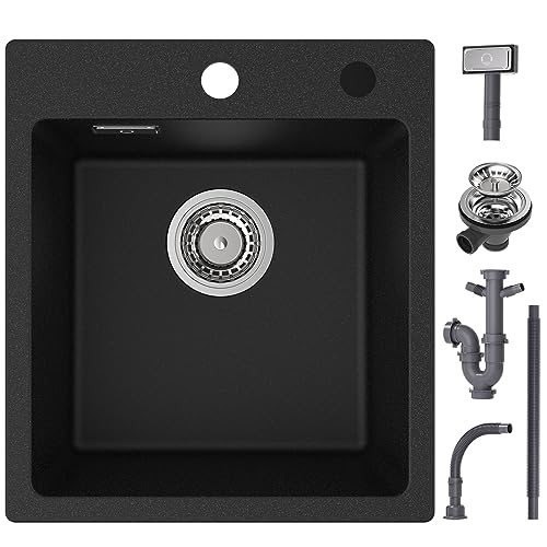 CECIPA Evier Noir 50x45cm, Évier Cuisine en Granit, Cuve Sim...