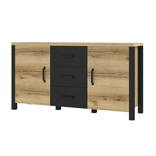 Buffet - Bahut - Enfilade Design Coloris Chêne clair et noir...