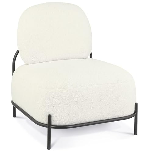 Fauteuil en tissu bouclette beige avec piètement en métal no...