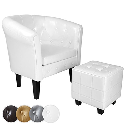 vidaXL Fauteuil avec Pouf Blanc Similicuir Fauteuil Chesterf...