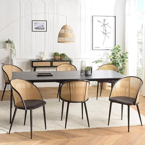 Lot de 2 fauteuils tissu noir dossier arrondi effet cannage...