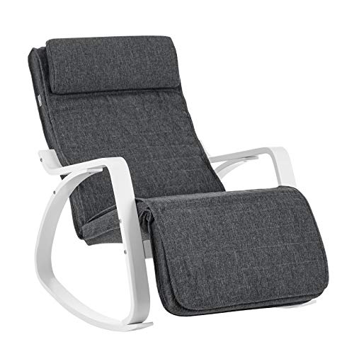 Fauteuil Bascule Bois Accoudoirs, 5 Positions Réglables, Gri...