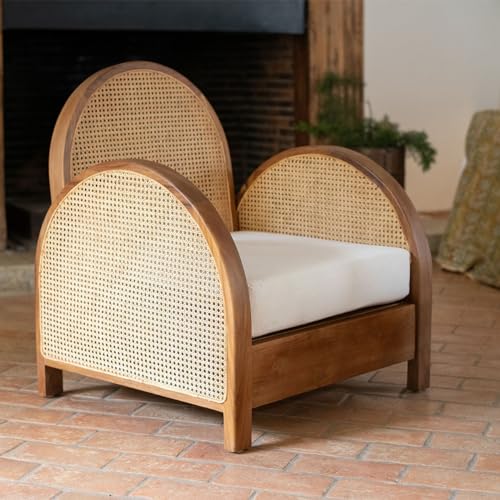 Meubletmoi Fauteuil Lounge en Bois Massif avec Cannage en Ro...
