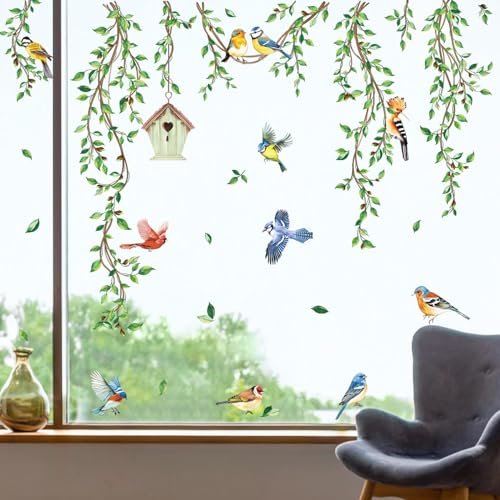 decalmile Autocollants Fenêtre Feuilles Verts Plantes Anti-C...