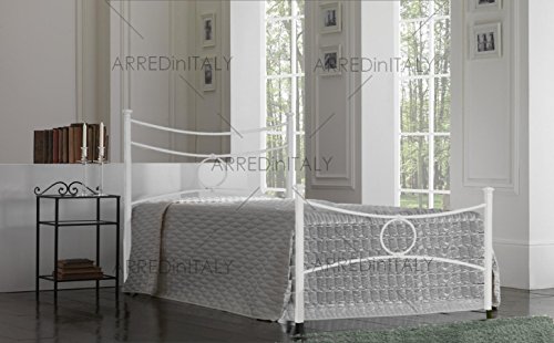 Lit 1 place, fer, blanc, repose-pied, sommier orthopédique,...