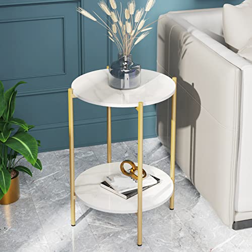 Fatiov Table Basse Marbre Blanc Doré, Table Ronde à 2 Niveau...
