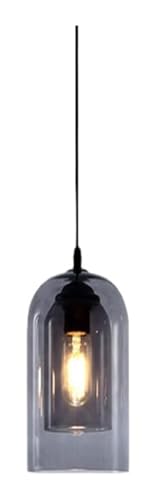 Lampe E27 scandinave, suspension verre-fer, lustre double co...