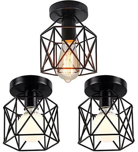 iDEGU Lot de 3 Plafonniers Industriels, 15CM Lustre Fer Forg...