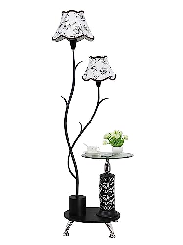 Moderne Lampadaire Fer En Fer Avec Table Verre 2 Abat-Jour