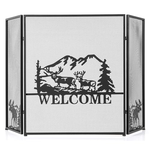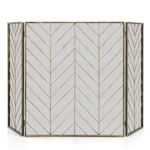 GIANTEX Écran de Cheminée à 3 Panneaux Pare-feu et Clôture e...