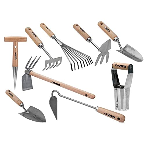 ✅ Set 9 outils de jardin VITO avec manche en bois. Ensemble...