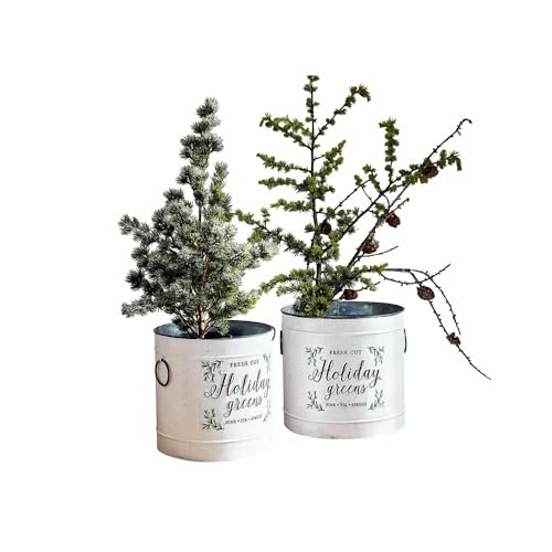 Loberon Lot de 2 Cache-Pots Holiday Greens - Fer - - Blanc/G...