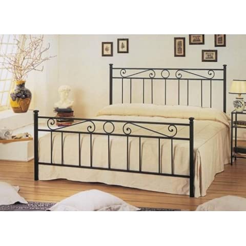 Lit double en fer forgé noir graphite mat, disponible avec o...