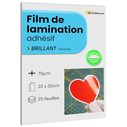 Lamination auto-adhésive feuilles A4 brillantes 25 feuilles