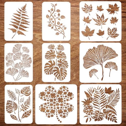 FINGERINSPIRE 9Pcs Feuilles Tropicales Peinture Grand Pochoi...