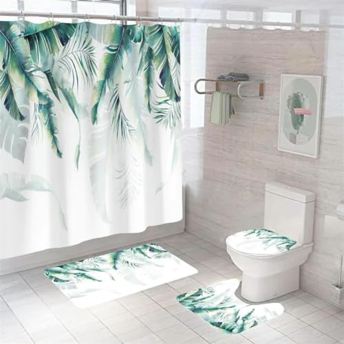 Rideau de bain feuilles tropicales tapis antidérapant imperm...