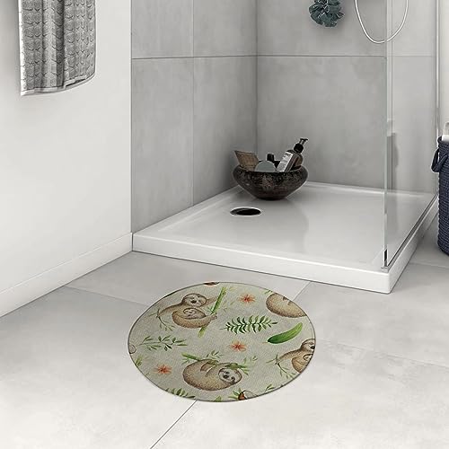 Dhaey Tapis rond bain palmier feuilles bohéen
