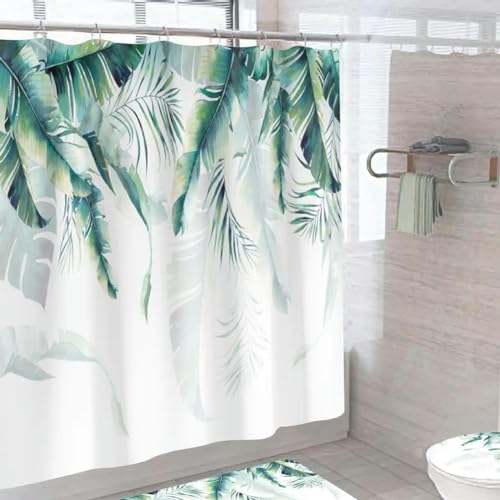 Rideau bain feuilles tropicales polyester imperméable croche...