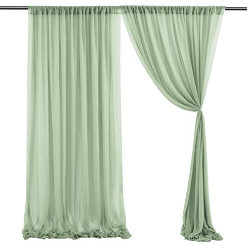 Lot de rideaux semi-transparents vert sauge en mousseline po...