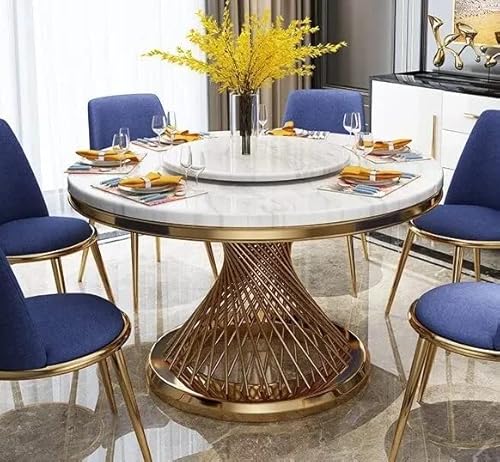 Sweet Deco Table Rond Marbre Blanc Pieds Dorés