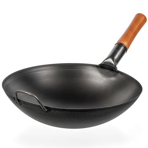 Yosukata Woks 36cm Fond Rond Pré-assaisonné Acier Carbone No...