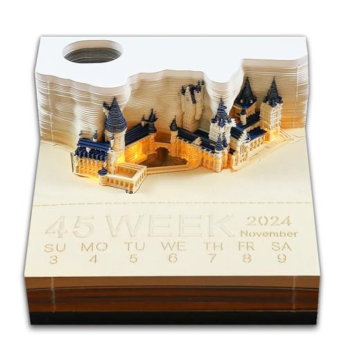 Calendrier 3D 2024, bloc-notes 3D avec lumière et porte-styl...