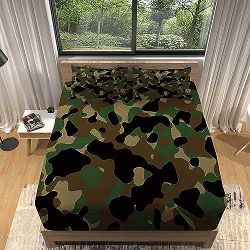 Drap Housse 90x190 cm Camouflage, 3D Vert Marine Drap-Housse...