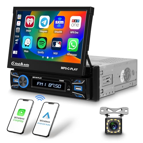 Hikity 1 Din Autoradio Bluetooth avec sans Fil CarPlay Andro...