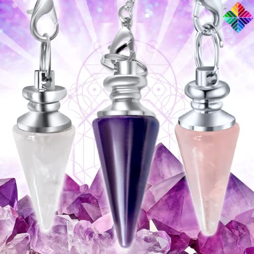 Pendule Divinatoire x3 en CRISTAL DE ROCHE, AMETHYSTE et QUA...