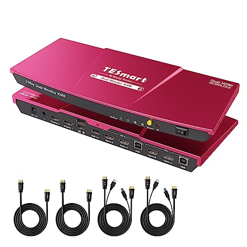 TESmart Commutateur KVM 2 Moniteurs 4K@60Hz,Edid, Audio L/R,...