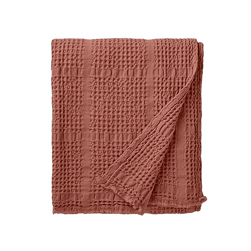 Plaid nid d''abeille Jacquard en Coton, Yogi, Terre Cuite, 1...